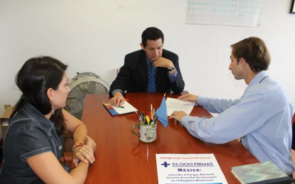 The Los Tuxtlas Biosphere Reserve and the Veracruz Reef System are at risk from the expansion of the Port of Veracruz, authorized by SEMARNAT. Signatures to protect the important natural sites were collected on a citizens’ petition at change.org/saveveracruz A coalition of organizations has alerted the Scientific Committee of the Inter-American Commission for the Protection of Sea Turtles of the threat the project poses to sea turtles. Yesterday civil society organizations delivered more than 36,000 signatures urging Mexico’s Secretary of Environment and Natural Resources (SEMARNAT) to revoke an environmental permit granted for the extraction of basaltic rock from Los Tuxtlas Biosphere Reserve for the expansion of the Port of Veracruz. The highly successful citizens’ petition was delivered to José Luis Juan Bravo Soto, the Director of Citizen Services at SEMARNAT, and David Gutiérrez Carbonell, the Director General of Conservation Development at CONANP. The authorization granted to the Port Authority of Veracruz by the government in June 2014 would increase the damage the port has historically cause to the surrounding coral reef ecosystem, and put in danger two of the most important natural treasures in Mexico: the Los Tuxtlas Biosphere Reserve and the Veracruz Reef System. The Interamerican Association for Environmental Defense (AIDA), the Centro Mexicano de Derecho Ambiental, A.C. (CEMDA) and the organizations Resistencia Organizada por la Conservación Ambiental (La Roca) and the Asamblea Veracruzana de Iniciativas y Defensa Ambiental (LAVIDA) stated in a press conference that the Veracruz Reef System is already in grave danger due to SEMARNAT’s approval, without sufficient technical and scientific information, of a plan to modify the borders of the Veracruz Reef System National Park in order to expand the Port of Veracruz. Permission granted for the extraction of basaltic rock from Los Tuxtlas Biosphere Reserve for construction of the port’s new jetties conflicts with the Reserve’s management program, which expressly prohibits the use of explosives in the area. This region contains one of the last rainforests in Mexico, serves as a natural barrier against hurricanes and tropical storms, provides a refuge to millions of plant and animal species, and is home to many communities. In addition to actions taken so far, on September 22 AIDA and CEMDA presented a report before the Scientific Committee of the Inter-American Convention for the Protection and Conservation of Sea Turtles (IAC), detailing the direct and indirect impacts that the expansion of the Port of Veracruz would have on sea turtles and their habitat. The Veracruz Reef System is the largest coral ecosystem in the Gulf of Mexico. It works as a natural barrier against waves and storms; in 2010 it protected the city of Veracruz from Hurricane Karl. It is also home to a large variety of flora and fauna. The coasts of Veracruz, including the reef system, receive at different times of year five species of neotropical sea turtles. The Port Authority said in its environmental impact statement that the project “will never have a direct effect on protected species.” The statement, however, failed to provide protection measures for sea turtles, particularly for the hawksbill turtle, listed as a threatened species under both the Sea Turtle Convention and Mexican law. This species is found in the Veracruz Reef System National Park and has migration routes throughout the Gulf of Mexico. SEMARNAT authorized the expansion project in December 2013, without requiring a special management plan for the conservation of the hawksbill sea turtle. The authorization, therefore, runs contrary to the obligation of the Mexican government to promote the protection, conservation and recovery of sea turtle populations and the habitat on which they depend, particularly spawning and feeding grounds. It does nothing to restrict human activities that could affect the turtles, particularly during periods of breeding and incubation. The Veracruz Reef System was declared a Natural Protected Area in 1992 and was registered, in 2004, as a Wetland of International Importance in accordance with the characteristics established by the Ramsar Convention. The authorization granted by the environmental authority therefore contravenes national and international standards and does not properly consider the cumulative impacts that the project would have on the ecosystem. It also ignores the Mexican government’s responsibility to protect the biodiversity found within its territory, and disregards the National Biodiversity Strategy and provisions of the Convention on Biological Diversity. Sign the petition at: change.org/saveveracruz Photos of the delivery of signatures: http://www.cemda.org.mx/?p=4555