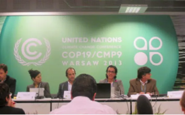 Por Andrea Rodríguez, asesora legal de AIDA, @arodriguezosuna, y Mónica Valtierra, voluntaria de AIDA Varsovia, Polonia. El financiamiento destinado a combatir el cambio climático ha estado muy presente en los eventos paralelos a la COP19. Los aspectos discutidos en torno a ese tópico incluyen el origen de los recursos, la preparación previa a la movilización de los mismos, y el destino del apoyo financiero traducido en acciones que aporten de forma real a solucionar el problema. persificando las fuentes de financiamiento del Fondo Verde Climático (FVC) El World Business Council for Sustainable Development (WBCSD) y la Climate Markets and Investment Association (CMIA) organizaron un evento para discutir sobre ese tema, así como acerca de los instrumentos necesarios para movilizar los fondos del FVC. Giles Dickson, vicepresidente de Política Ambiental y Promoción Mundial del conglomerado multinacional de energía y transporte Alstom, dijo que para que el sector privado participe con recursos económicos, deben crearse en el Fondo mecanismos de incentivos y marcos de inversión en forma de préstamos. Es importante romper con el mito de que el sector privado utilizará recursos públicos para su beneficio, pues su intención real es contribuir a los instrumentos financieros en los que el sector público tiene participación, destacó. Por su parte, Jeanne Ng, directora de Asuntos Ambientales de la compañía de electricidad CLP Group, con sede en Hong Kong, afirmó que el sector privado ya realiza proyectos de financiamiento para energías renovables sin el uso de recursos públicos. Por ello, añadió, es necesario que el Fondo tome en cuenta esos esfuerzos para integrarlos en sus objetivos y que los recursos públicos no vayan a proyectos que ya están siendo atendidos. Sobre las atribuciones que tendrían que incluir al sector privado en las inversiones del Fondo, Ng señaló que no es posible que el FVC comercialice productos bajos en el uso de carbón sin la ayuda de instituciones privadas. Para Vikram Widge, jefe de Finanzas y Política sobre Clima de la Corporación Financiera Internacional (CFI), el Fondo debe tener un rol participativo para capitalizar los recursos financieros y generar ganancias. Los instrumentos financieros deben garantizar la estabilidad de los recursos privados y el desarrollo de los países, puntualizó. Según Dickson, la participación del sector privado puede hacerse por tres vías: en proyectos a nivel local y municipal, mediante la promoción tecnológica, y a través de la elaboración de proyectos provenientes de empresas privadas. Ello sólo sucederá si los gobiernos llevan a cabo políticas económicas que garanticen resultados positivos, aclaró. Preparación de la ayuda Esta cuestión fue el centro de la discusión en otro evento paralelo, denominado Rolling up the sleeves for the Green Climate Fund: Expectations and experience from building GCF readiness, en el que representantes de diferentes países expresaron su parecer: Sudáfrica. Zaheer Fakir, principal asesor de políticas en el Departamento de Asuntos Ambientales de Sudáfrica, señaló que hace falta un país líder para conducir los proyectos del Fondo, algunos de los cuales están diseñados para problemas ambientales específicos. Hay cosas que no pueden ser replicadas pues dependen de la capacidad institucional de cada país, remarcó. No se trata sólo de dar dinero a entidades nacionales, ya que existen problemas de lavado de dinero y acceso directo a los recursos financieros. Los recursos deben utilizarse para proyectos con un potencial de transformación y cuyo destino no debe de ser únicamente actividades para reducir las emisiones de gases de efecto invernadero, complementó. Al respecto, Richard Calland, profesor asociado de derecho público en la Universidad de Cape Town, elaboró un estudio sobre la preparación de cada país. En él menciona tres requisitos indispensables: debe ser relativo, responsivo y razonable. Al identificar dificultades nacionales en temas de planeación, propuso que el Estado forme alianzas financieras con instituciones de investigación. No se trata de la capacidad de implementar los recursos financieros, sino de usar la máxima capacidad posible, explicó. Por último, en el tema de acceso a los recursos financieros, hizo un llamado a pensar en cuáles serán las modalidades, los estándares fiduciarios y las salvaguardas. Alemania. Norbert Gorben mencionó que se está considerando la posibilidad de participar y contribuir el próximo año al FVC con 14 mil millones de euros a través de esquemas bilaterales y de organizaciones multilaterales. Recordó que la Junta Directiva del Fondo debe pedir a la Secretaría que se tomen acciones de preparación para empezar a implementar programas y movilizar los recursos lo antes posible. Alemania quiere dar apoyo en las áreas que cada país requiera de forma específica, añadió Ina Von Frantzius, asesora sobre política y financiamiento climático del Ministerio de Cooperación Económica y Desarrollo. Perú. Gabriel Quijandria, viceministro de Desarrollo Estratégico de Recursos Naturales del Ministerio de Ambiente, señaló que junto con el Ministerio de Finanzas se trabaja en un programa de modernización del Estado en el que se discute la creación y establecimiento de una entidad nacional encargada de implementar y administrar los fondos una vez que el FCV comience a operar. La preparación, agregó, no es un concepto fácil, sino un tema que involucra actitud. Para definirlo es necesario poner más atención a la perspectiva de las comunidades pobres, indicó. Como ejemplo citó a los agricultores que usan seguros internacionales contra los efectos de fenómenos climáticos como El Niño. El destino de los recursos El financiamiento de países del sur para también países del sur parece una tendencia creciente en el mundo en desarrollo. En su mayoría, los recursos provienen de los sect